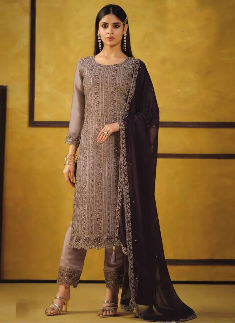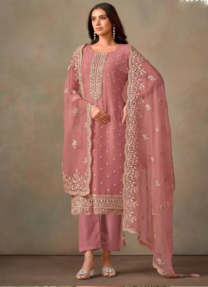 Onion pink heavy rangoli coding sequence salwar suit semi stitched