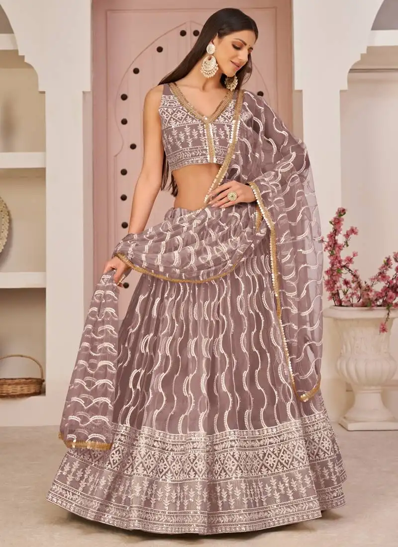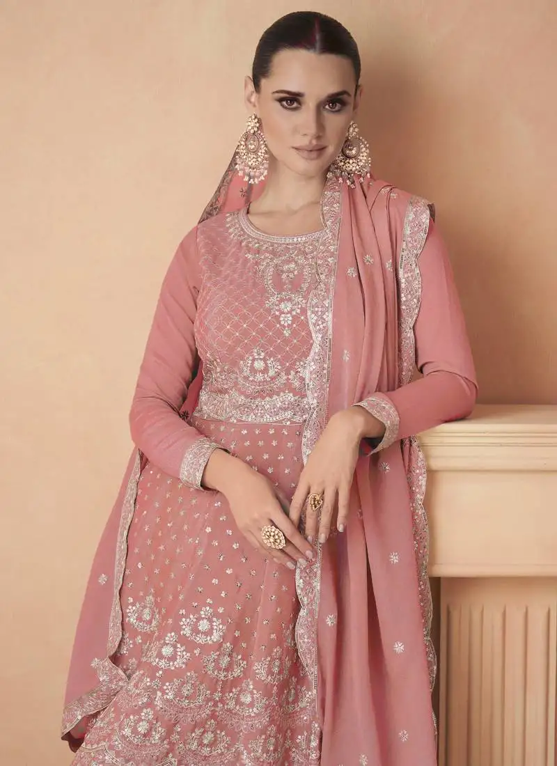 Peach georgette anarkali salwar suit with gajri embroidery – stitched