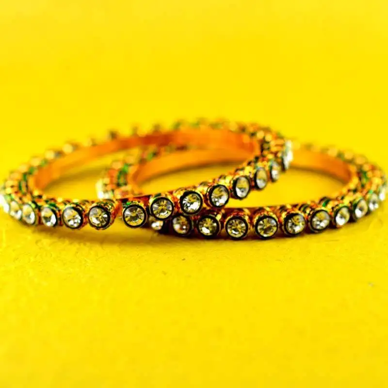 Sale!Rajasthani gokharoo,kara churi meenakari,moti,cz,stone,bangles size-2.4,2.6