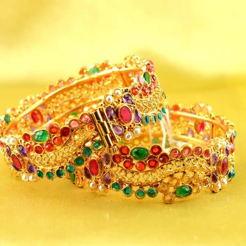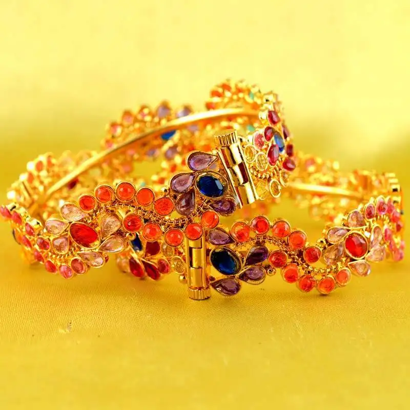 Sale!Bangle stone cz ad polki kundun meenakari pearl moti gold silver platted size-2.6