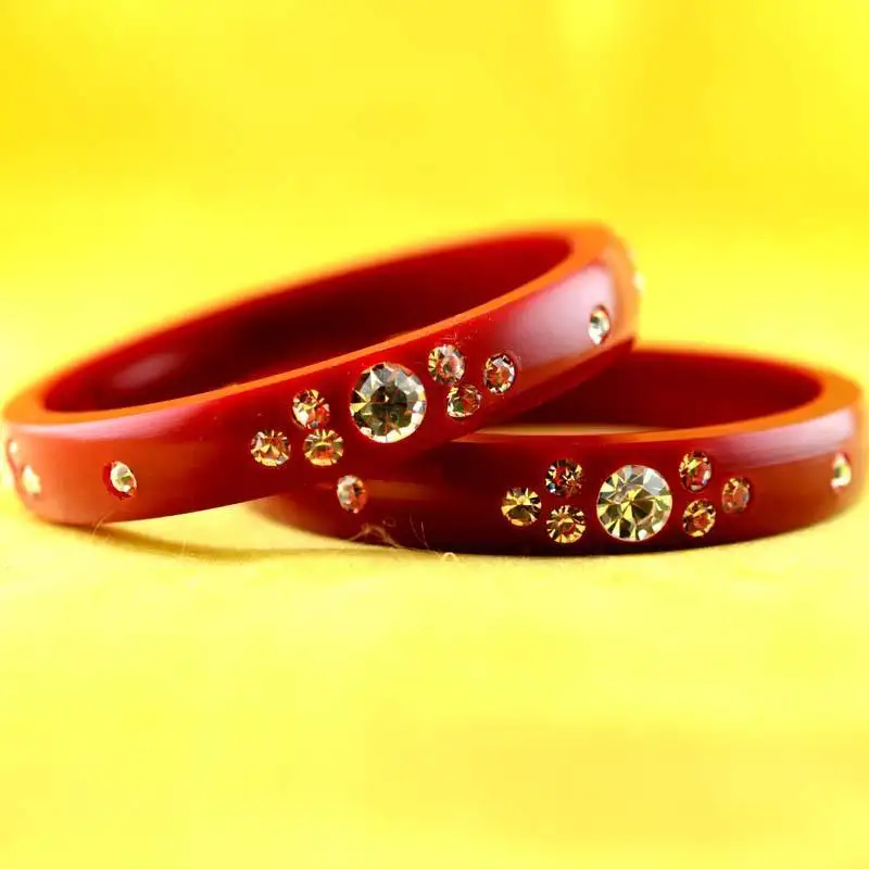Sale!Personalized photo bangles set with rhinestones embedded colour red size-2.4,2.6,2.8,2.10