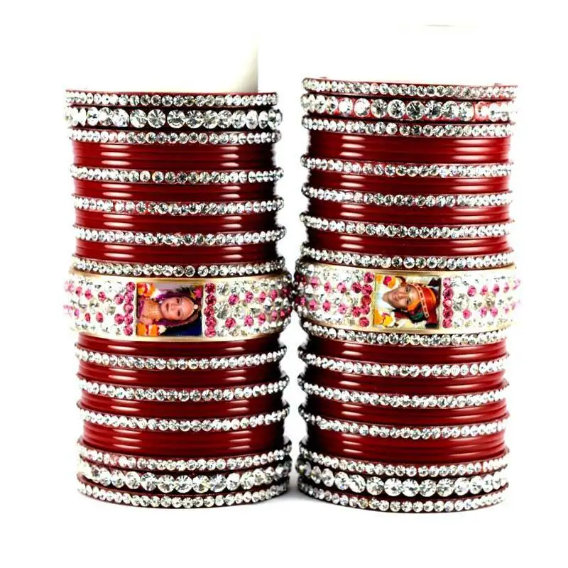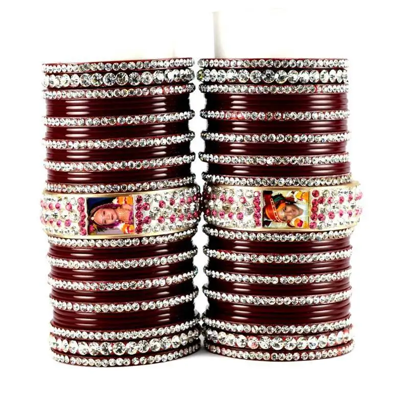Sale!Personalized photo bangles set with rhinestones embedded colour maroon size-2.4,2.6,2.8,2.10