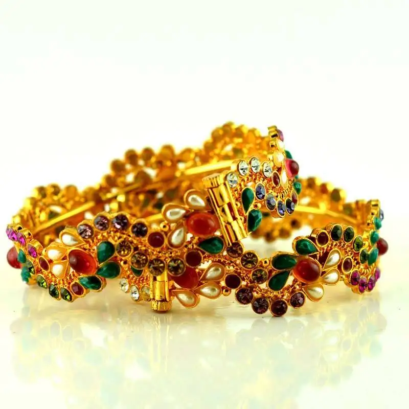Sale!Rajasthani gokharoo,kara churi meenakari,moti,cz,stone,bangles size-2.4