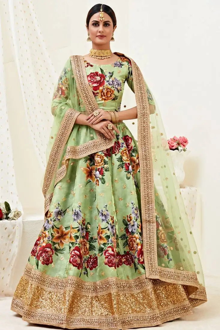 Adaa green carnation organza lehenga set