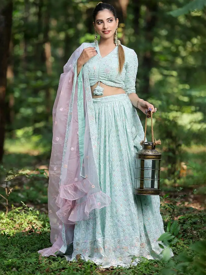 Be the first to review “Adaa pink lotus organza lehenga set”