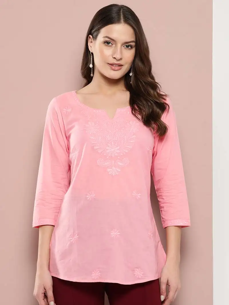 black chikankari striped regular top