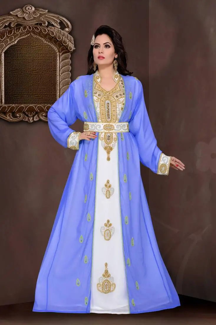 Be the first to review “Blue georgette farasha with zari and stone work”