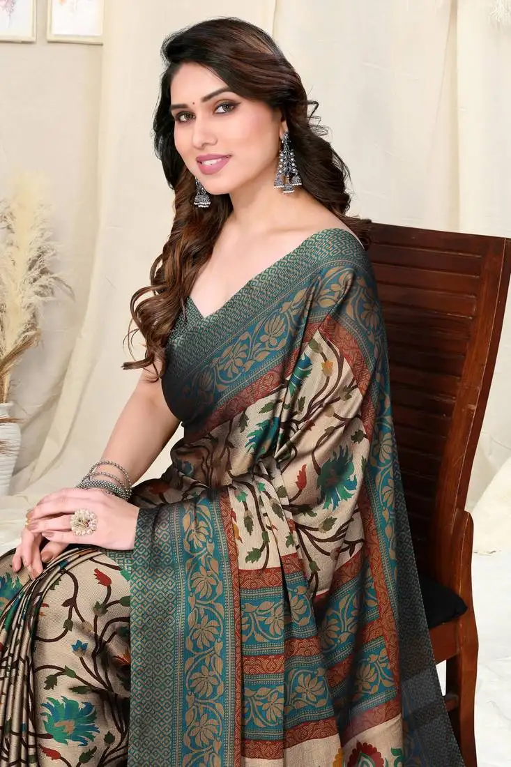 Grey kota doria lotas floral print golden zari border saree with unstitched blouse piece