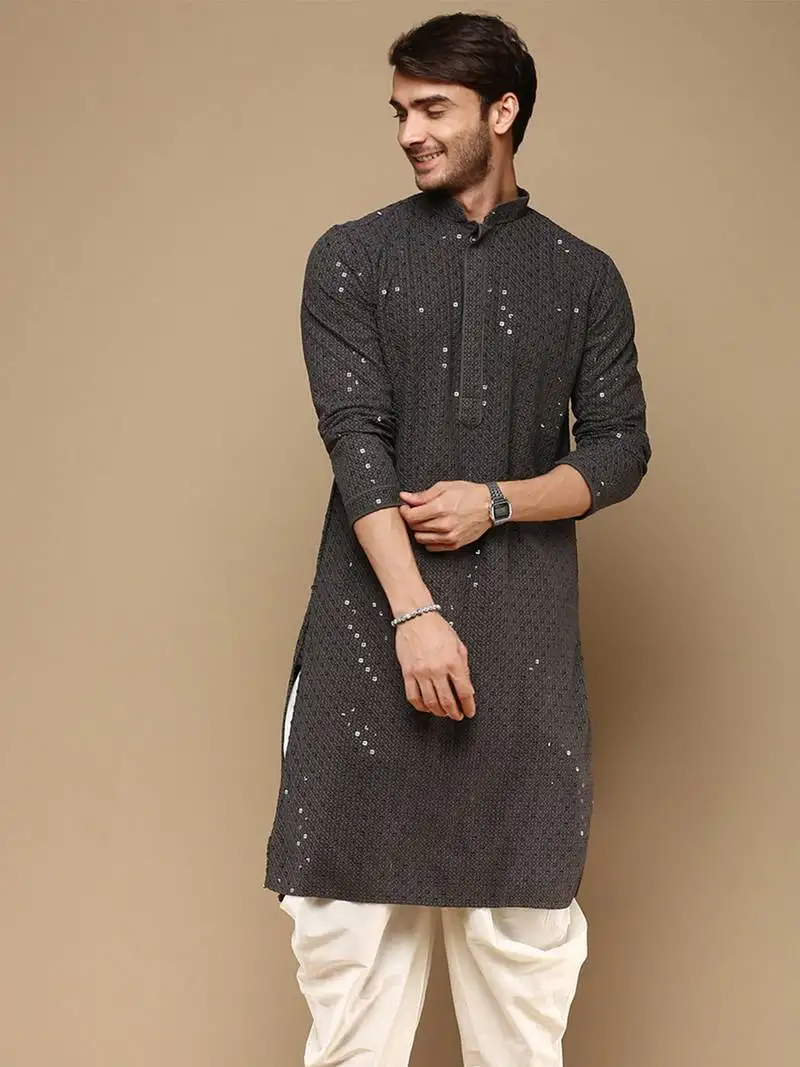 Be the first to review “Men’s dark blue cotton blend kurta”