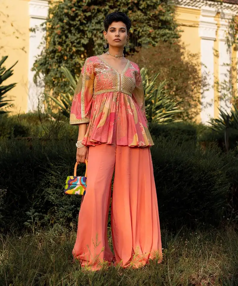 Multicolor zari work georgette islamic style party wear stones and beads embedded arabian kaftan