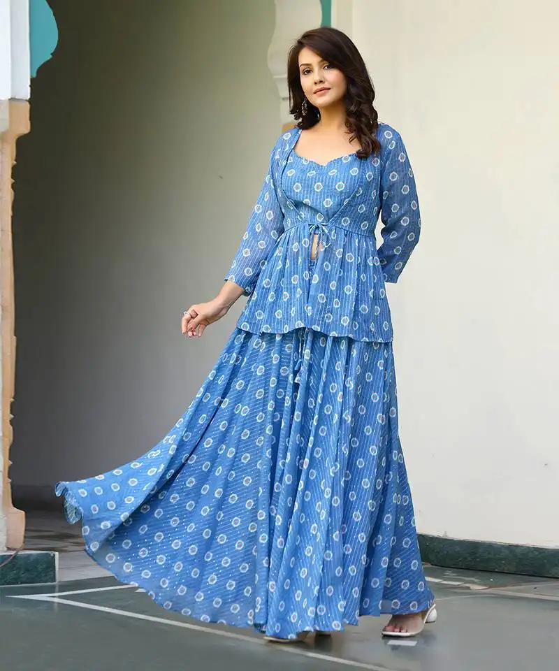 Navy blue self woven jacquard jacket set