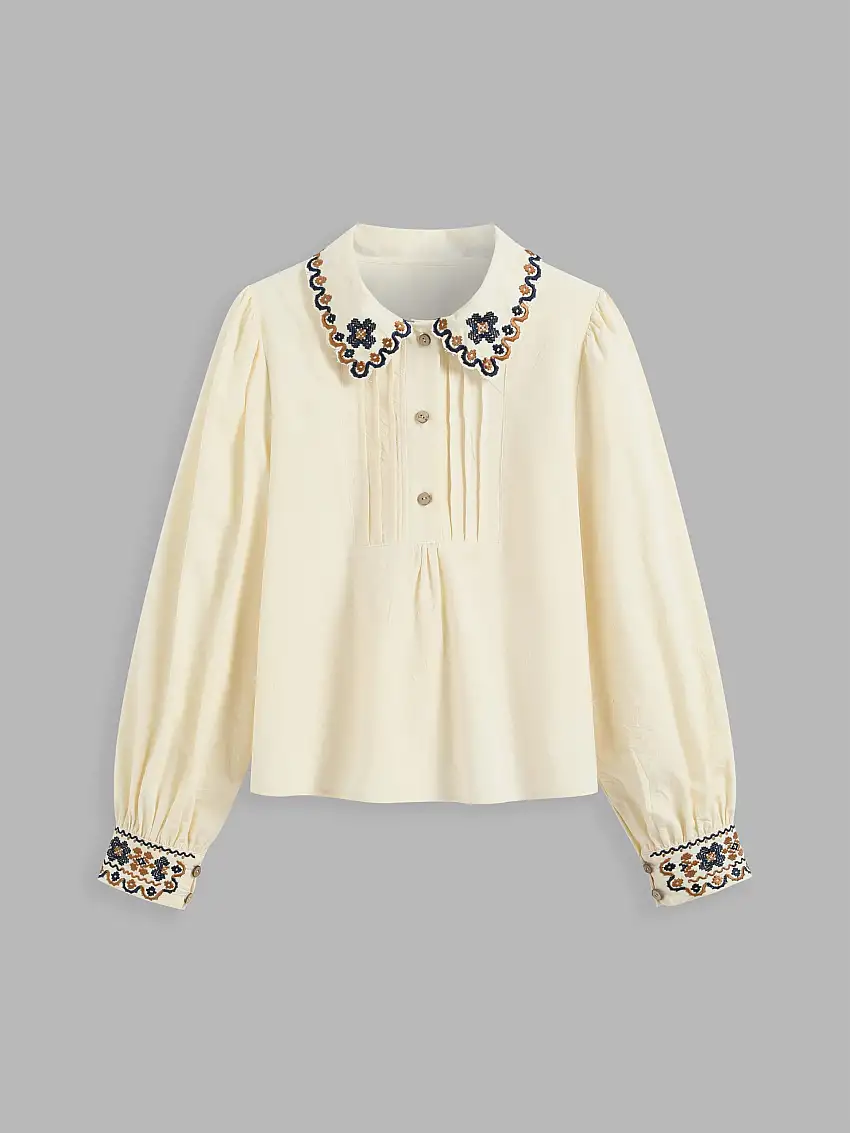 Sale!100% Cotton Collar Aztec Button Long Sleeve Blouse