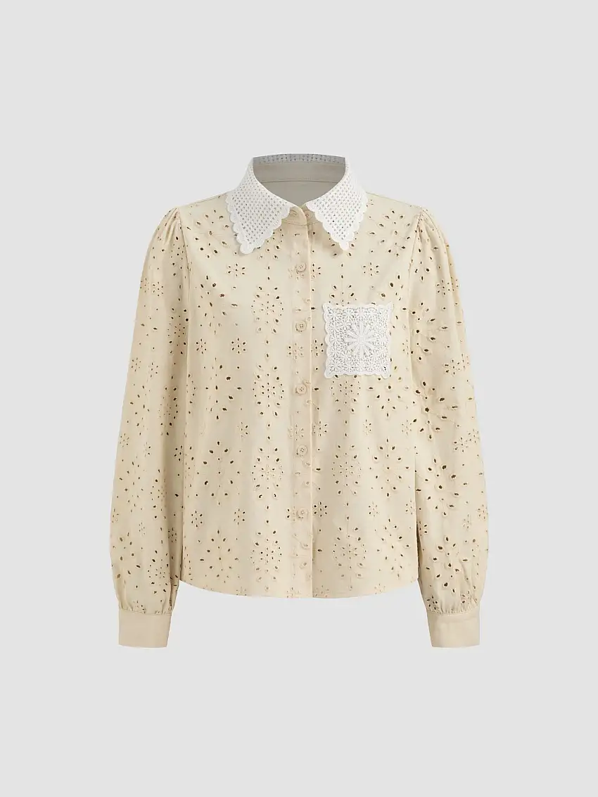 Sale!100% Cotton Collar Broderie Anglaise Button Shacket
