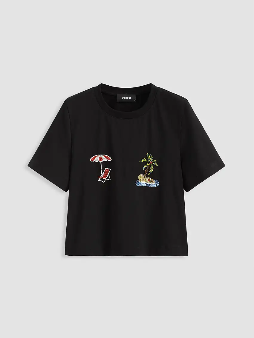 Sale!100% Cotton Coconut Tree Beach Beading Tee