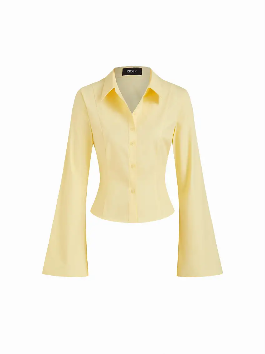 Sale!100% Cotton Collar Bell Sleeve Button Up Shirt