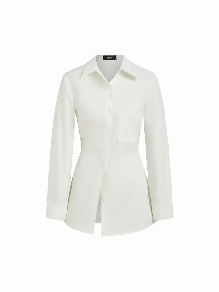 Sale!100% Cotton Collar Asymmetrical Button Longline Shirt
